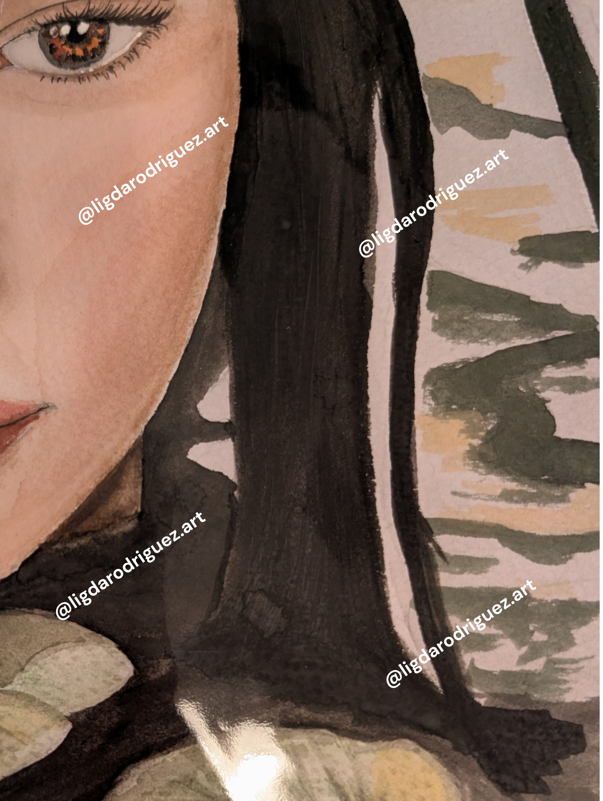 This evocative artwork captures a moment of quiet introspection, blending the fluidity of watercolour technique with intimate portraiture. A striking piece for collectors who appreciate figurative art with emotional depth and natural beauty.